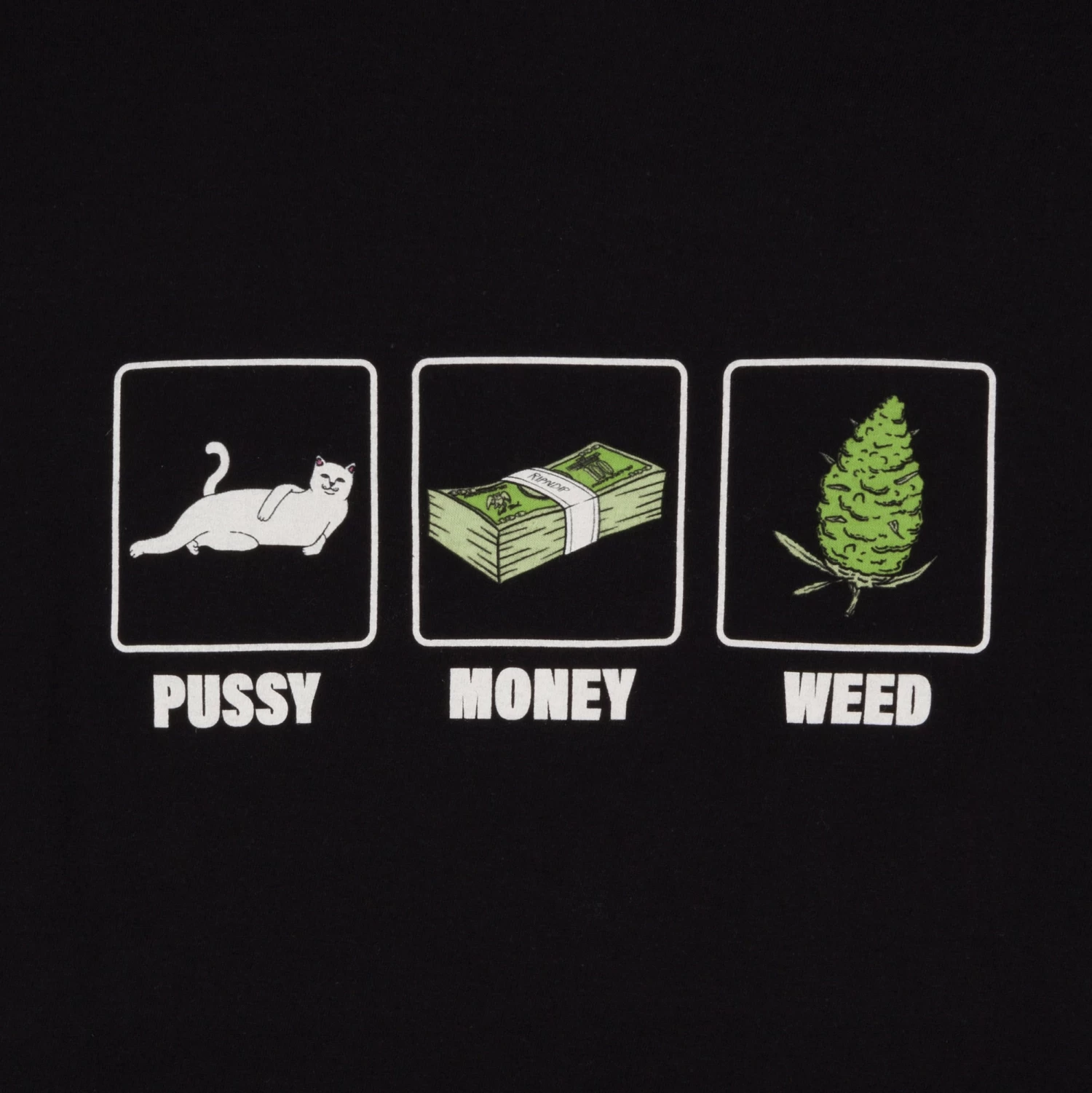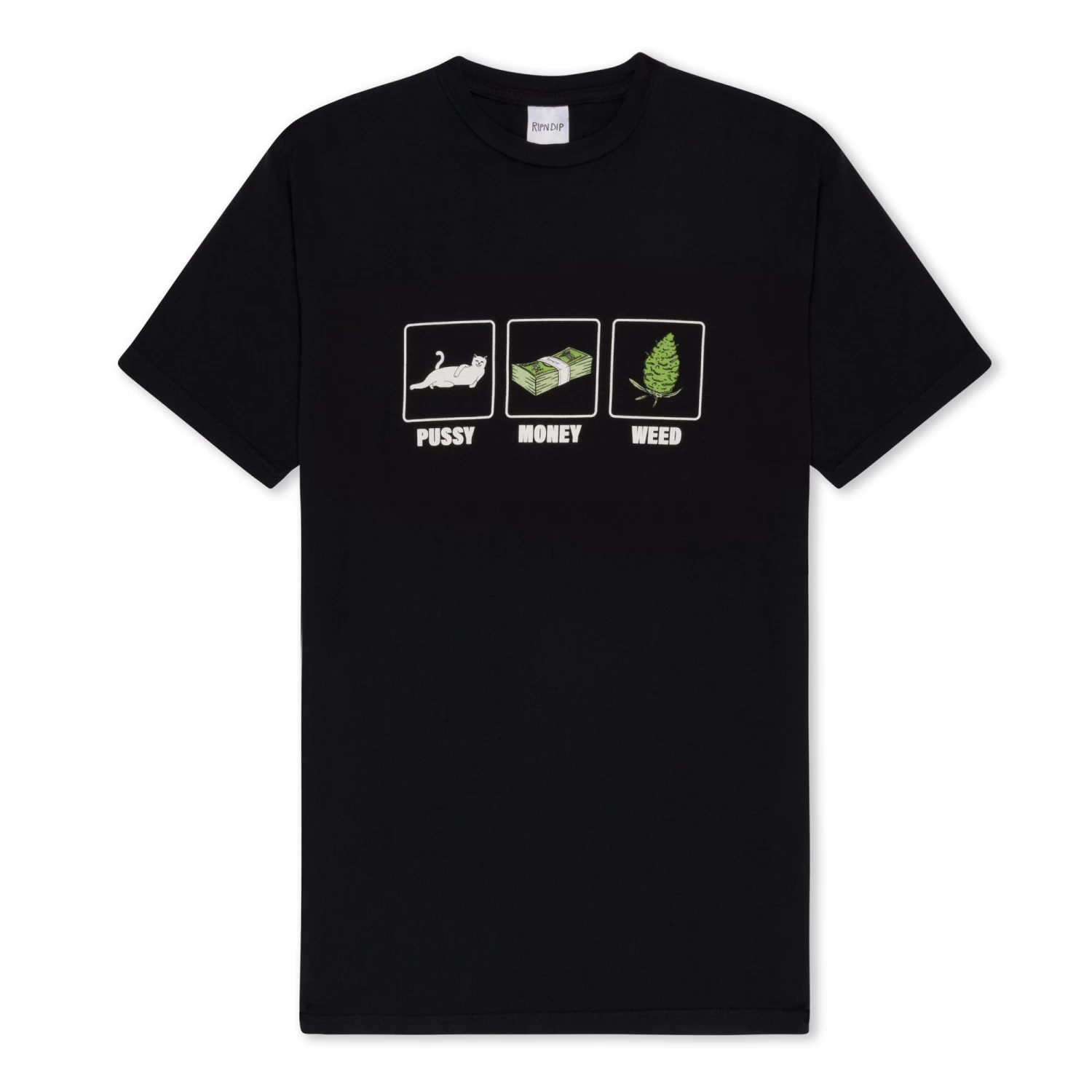 Be the first to review “RIPNDIP Pu$$y, Money, Weed Tee (Black)” Cancel reply